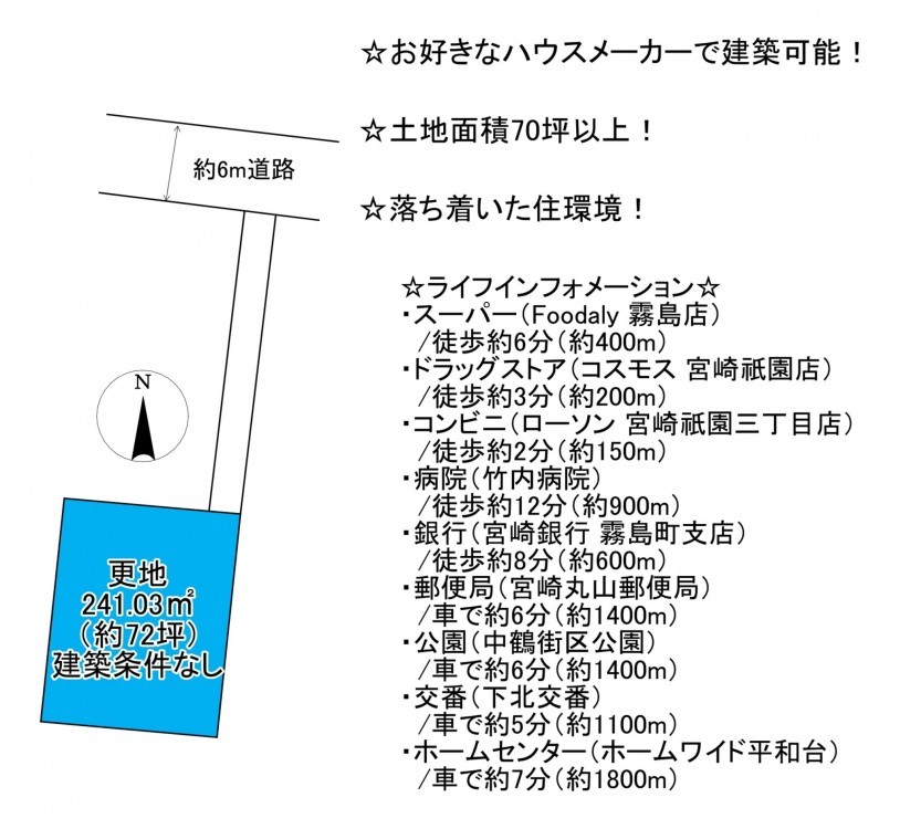 - 北側 私道2.6m 間口約2.6m