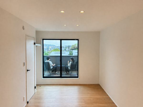 2階には4畳のバルコニーを設けています。洗濯物干しにつかっても良し。広さもあるので外で休憩するも良し。高台に位置している事もあり心地良い風が流れてきます。